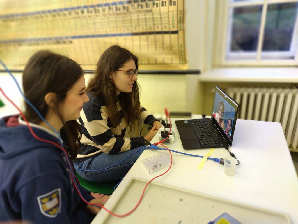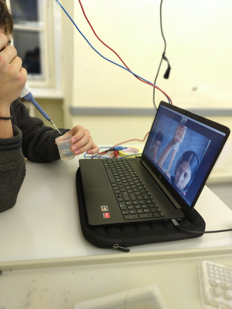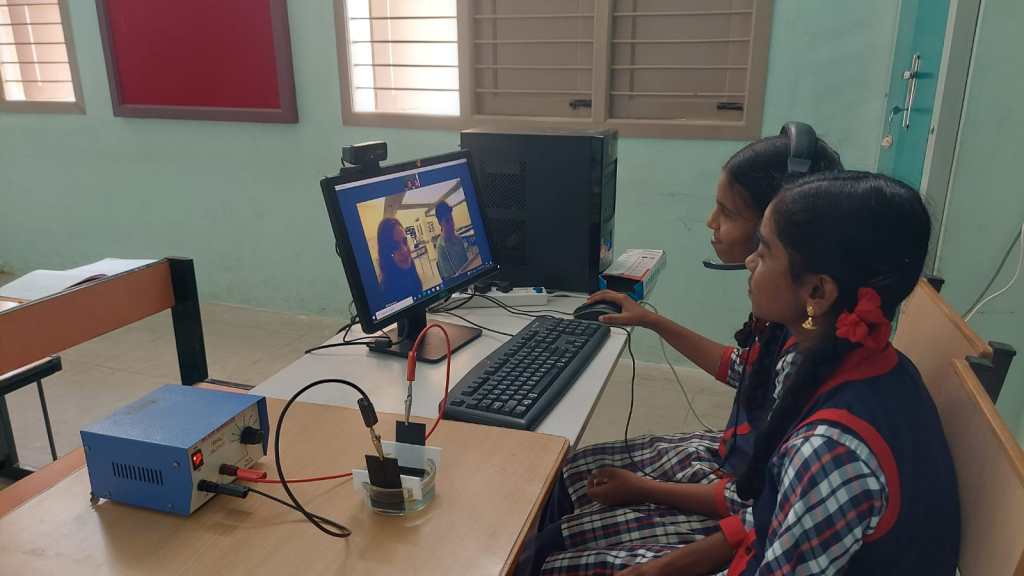 On December 18th 2023, 9 students from the pGRG Kollegium Kalksburg and 8 students from the Chirumalar School, Tamil Nadu, India met in break-out-sessions to do an experiment together.