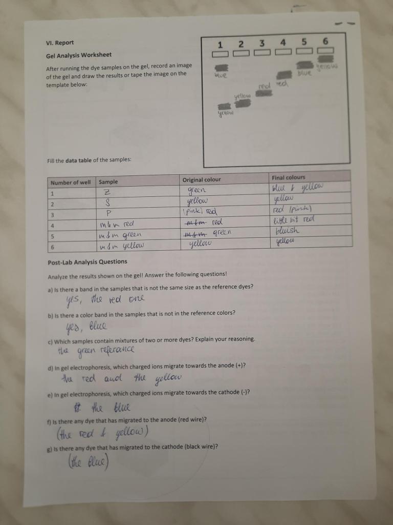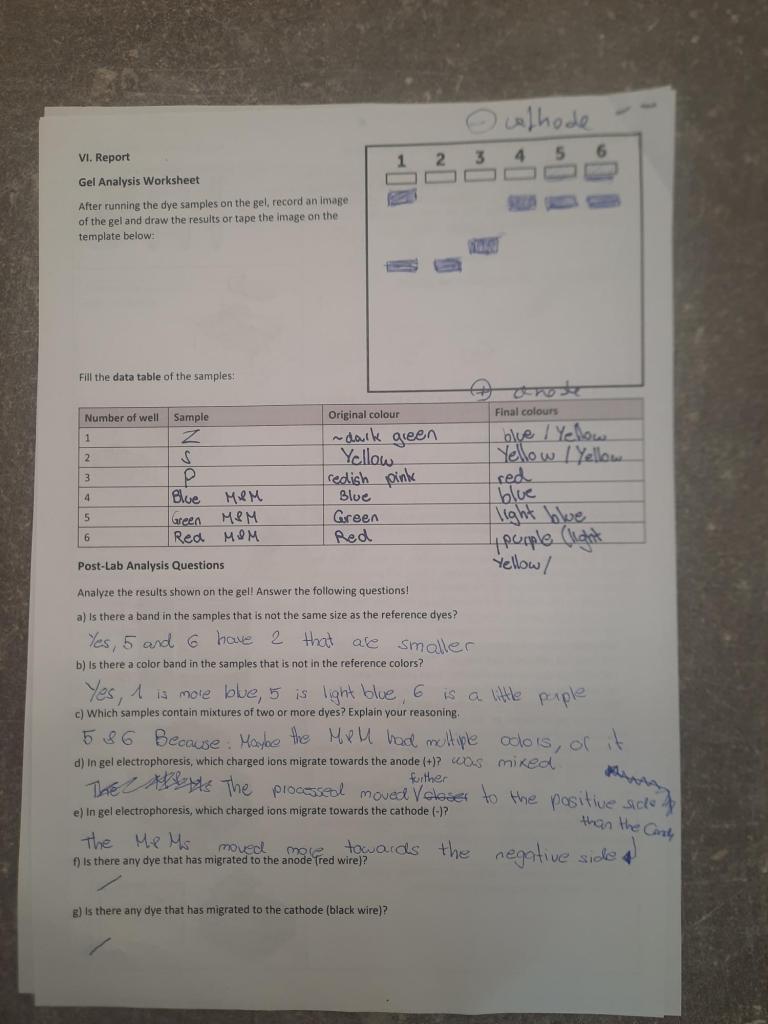 Experiment gelelectrophoresis of food dyes