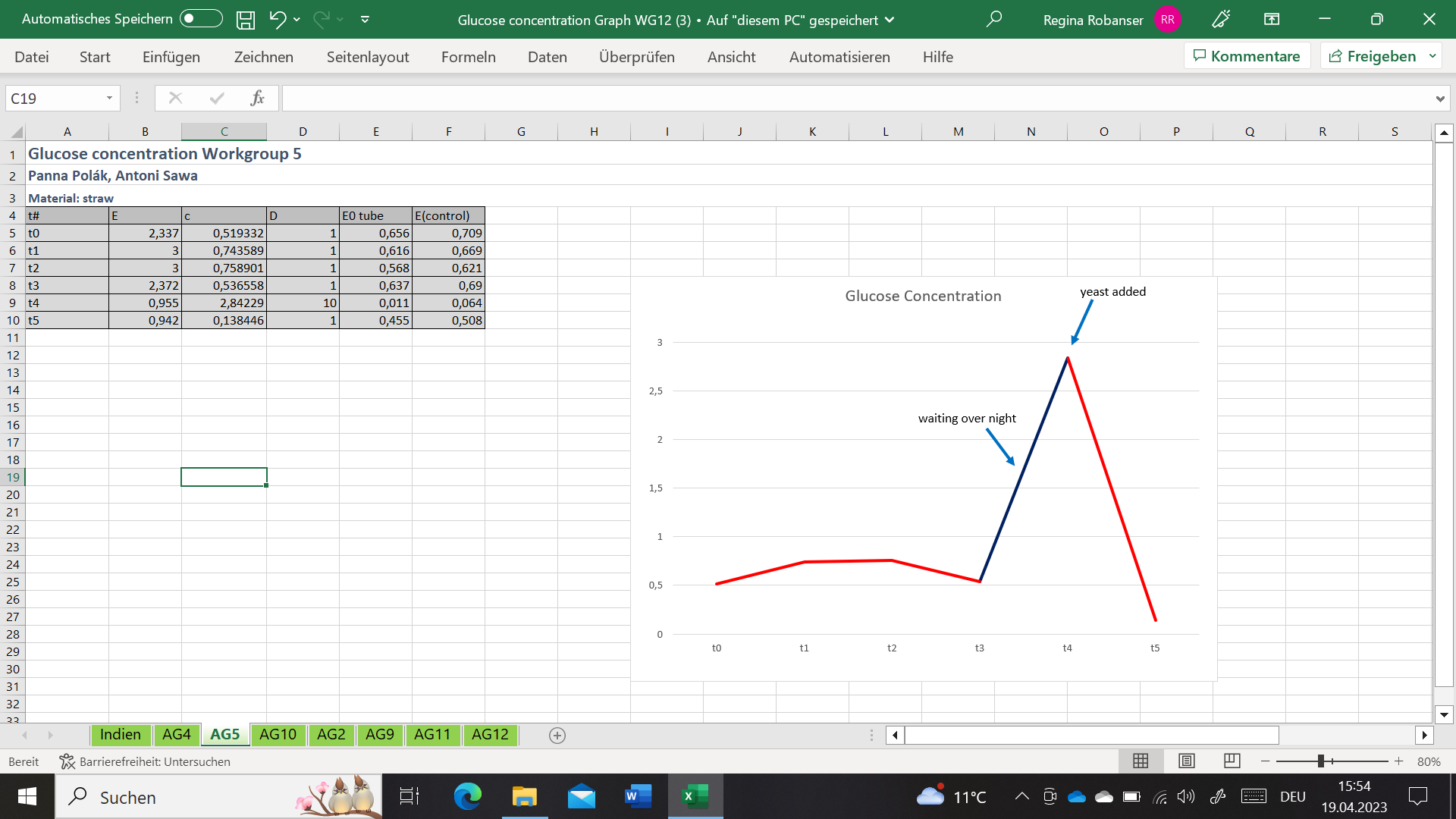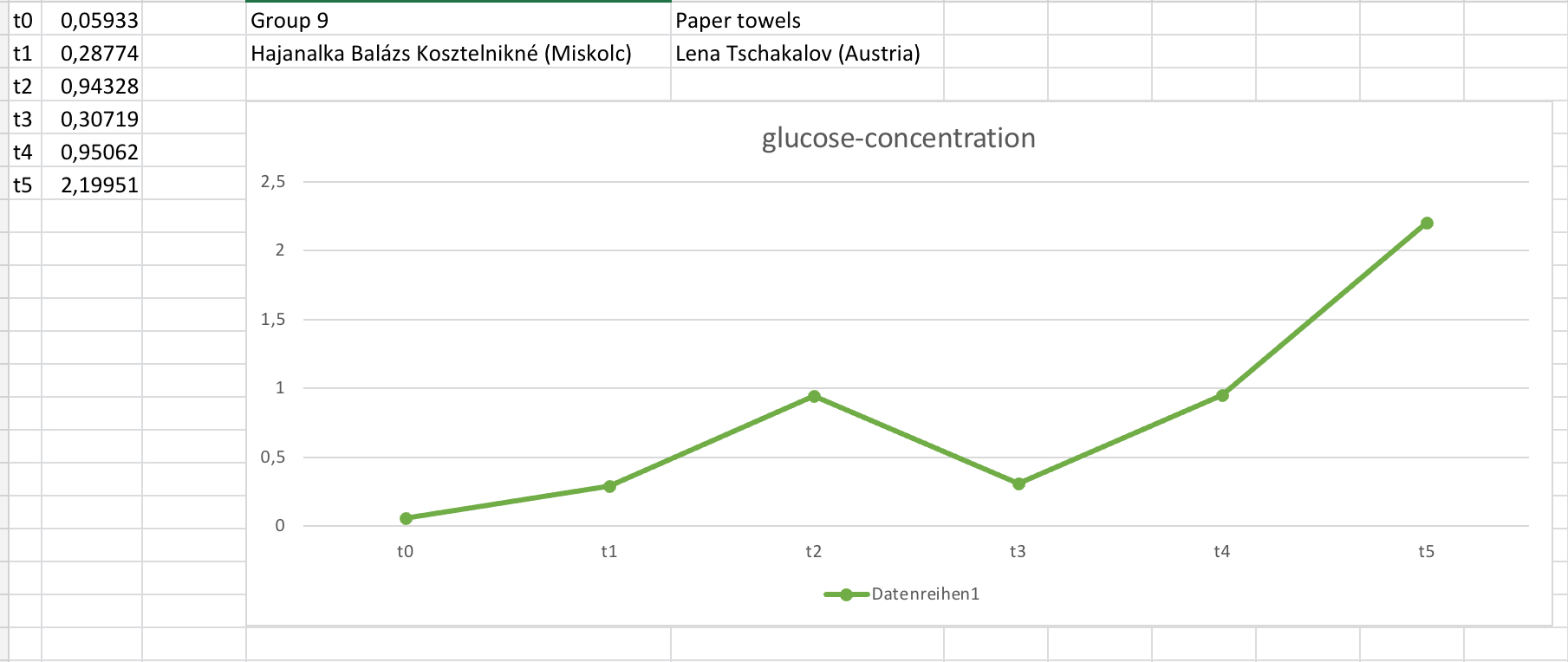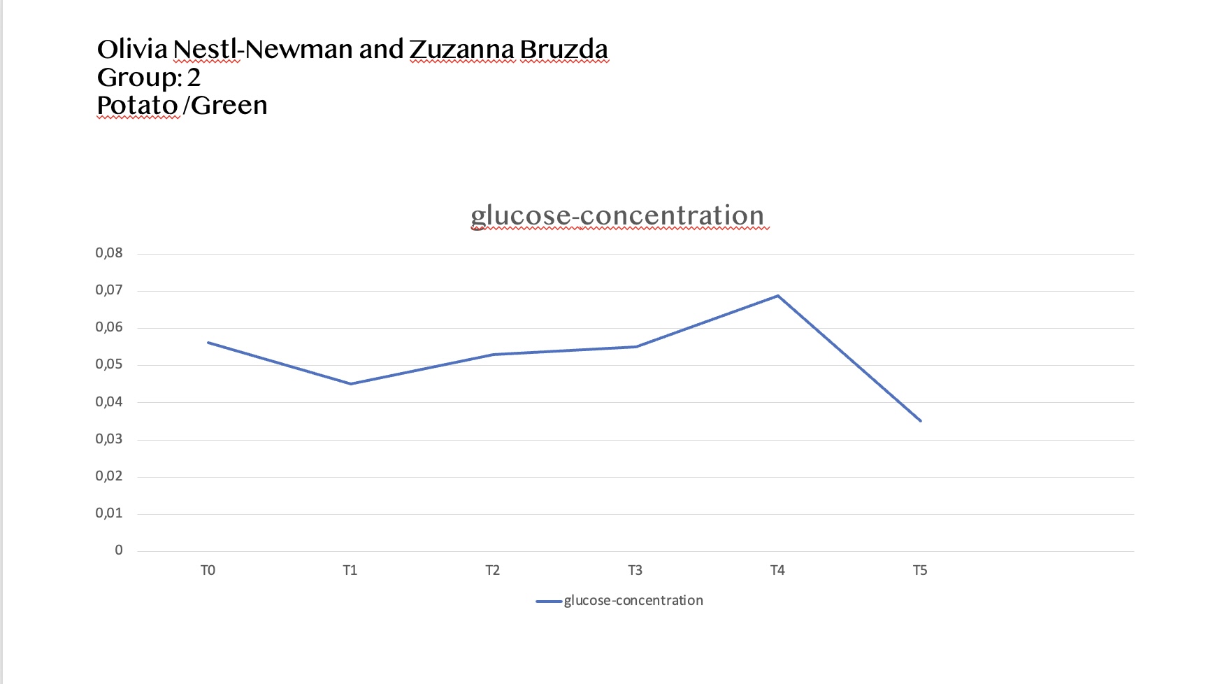 Measurement of glucose concentration – graphs of increasing and decreasing glucose concentration:
