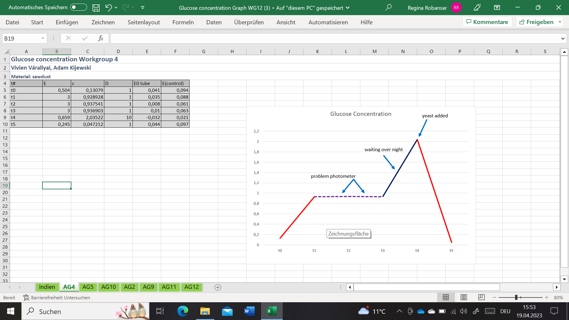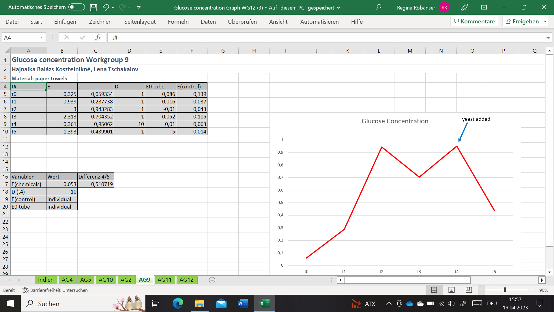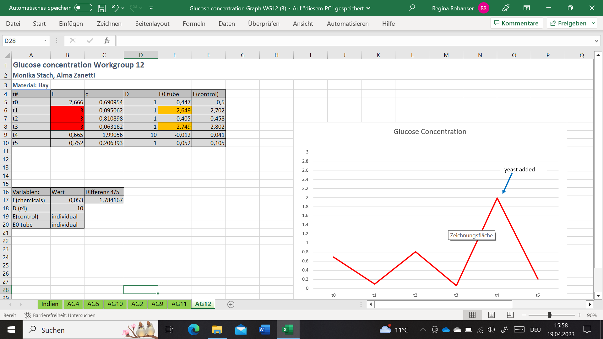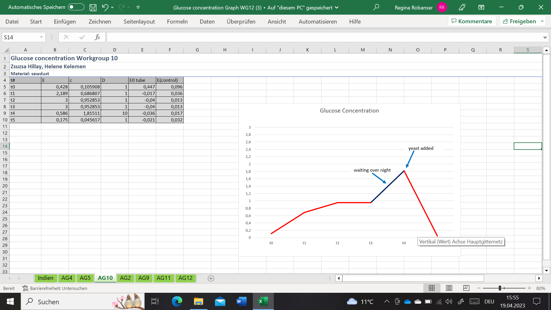 Measurement of glucose concentration – graphs of increasing and decreasing glucose concentration: