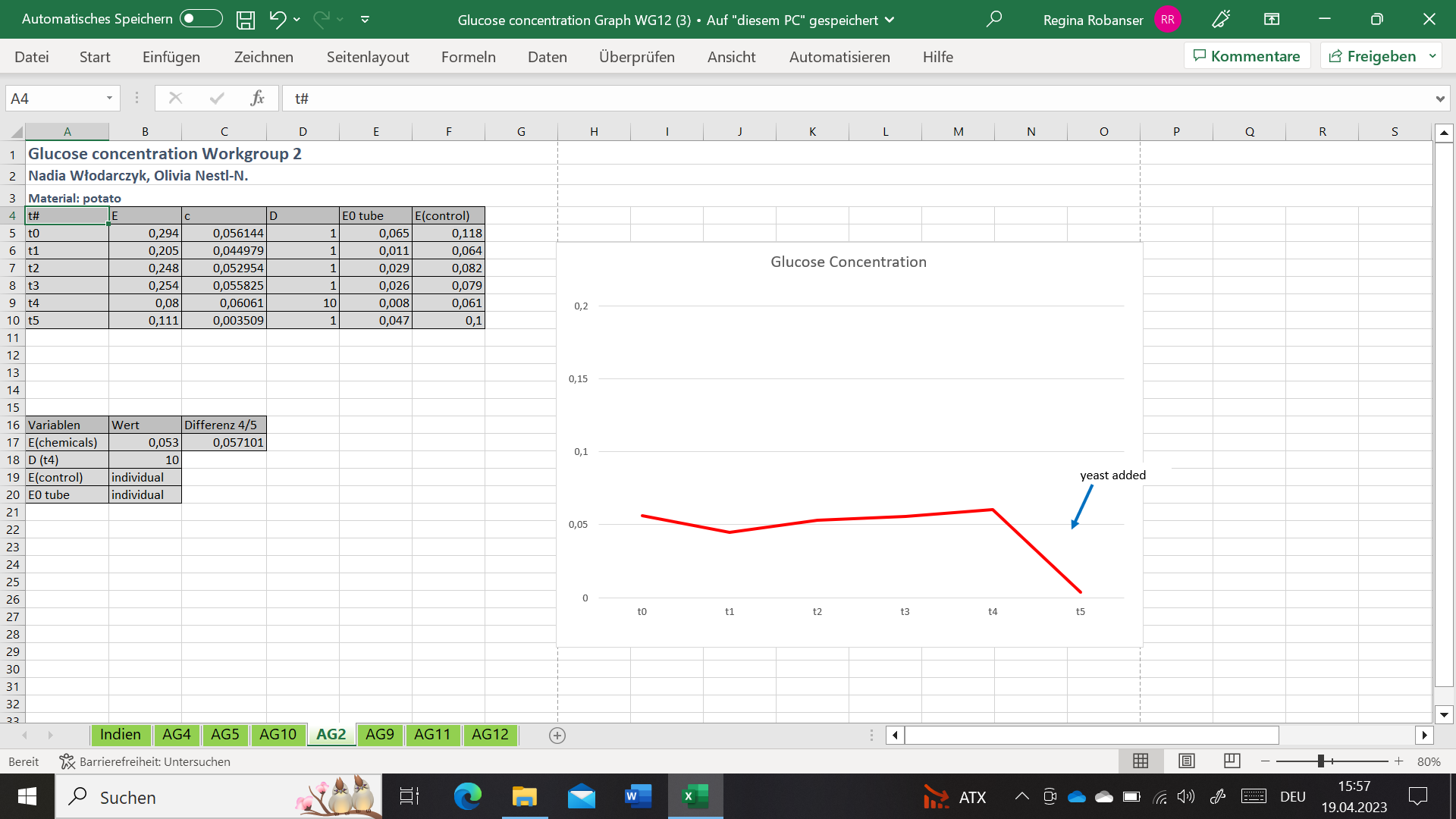 Results of the experiments done in Vienna