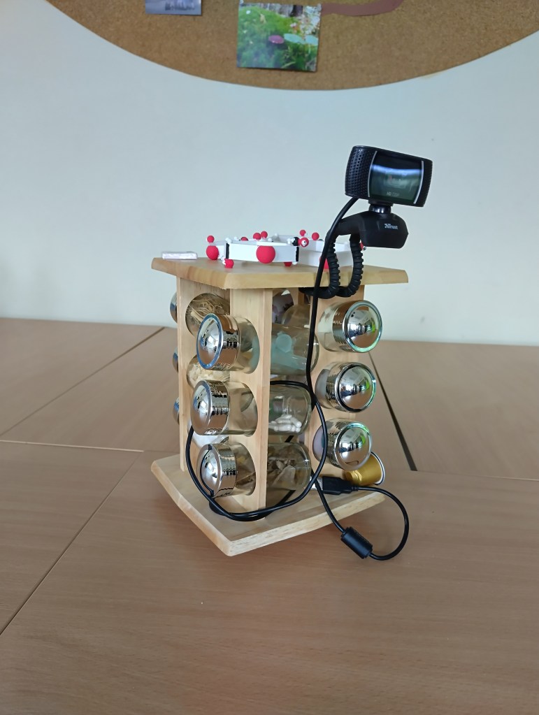Sculpture showing different steps of the experiment production of bioethanol