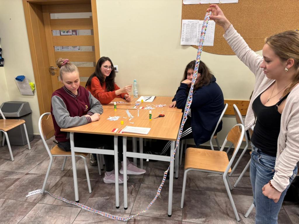 During this meeting we got a deeper insight into the structure of DNA. We worked together in small groups constructing a DNA-ladder (which group would manage to get the longest?) and combining it into a huge „Erasmus+-ladder“.