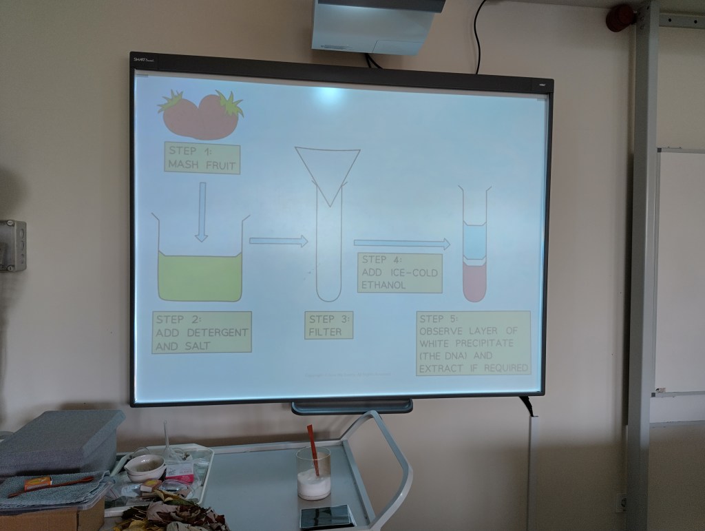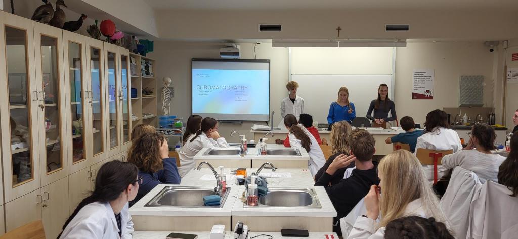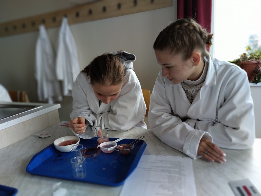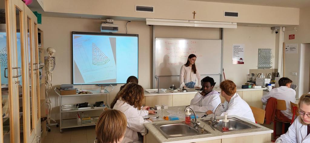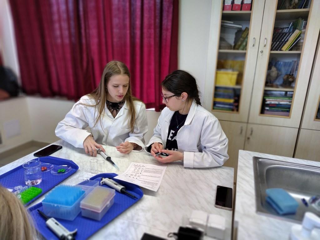 During the week, participants took part in science workshops focusing on the structure of DNA, transcription and translation, chromatography, and electrophoresis. Students did hands-on workshops on the use of micropipettes, DNA extraction, separation of plant pigments by chromatography, and food dyes by electrophoresis in laboratory conditions.