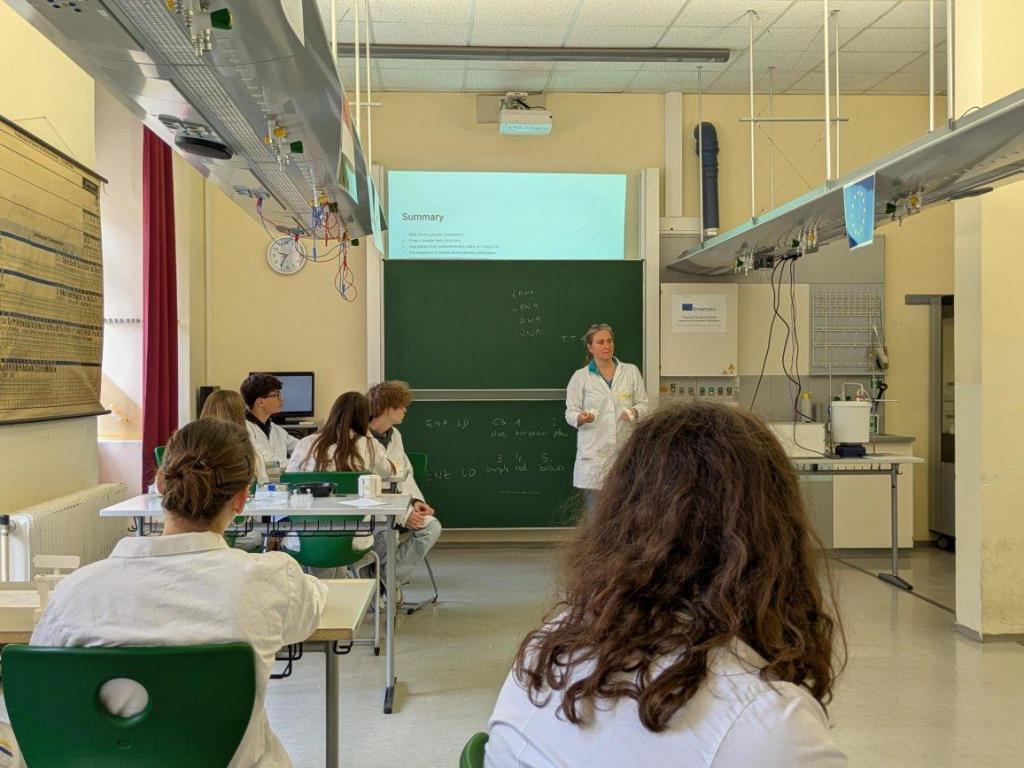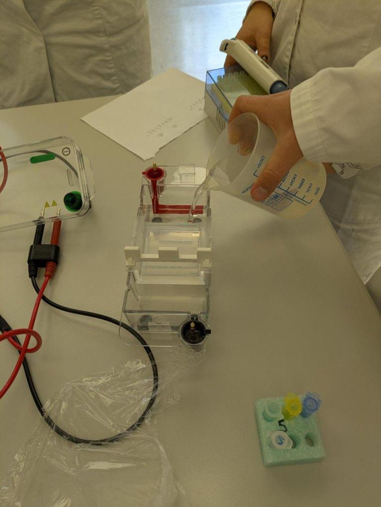 During the Erasmus+ 2026 week in Vienna we carried out an experiment on genetic fingerprinting (cutting of DNA using RFLP enzymes and separation by electrophoresis) in internationally mixed small groups. We learned about the theoretical background of the experiment by presentations hold by students, shooting a video and constructing a model of the experiment. The experiment was completed by an intense discussion of the results.