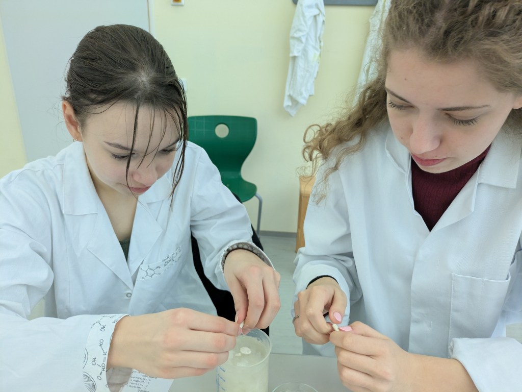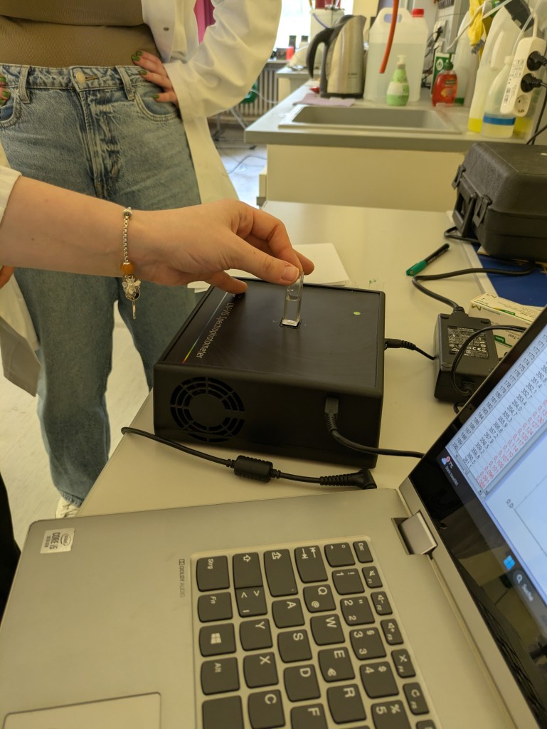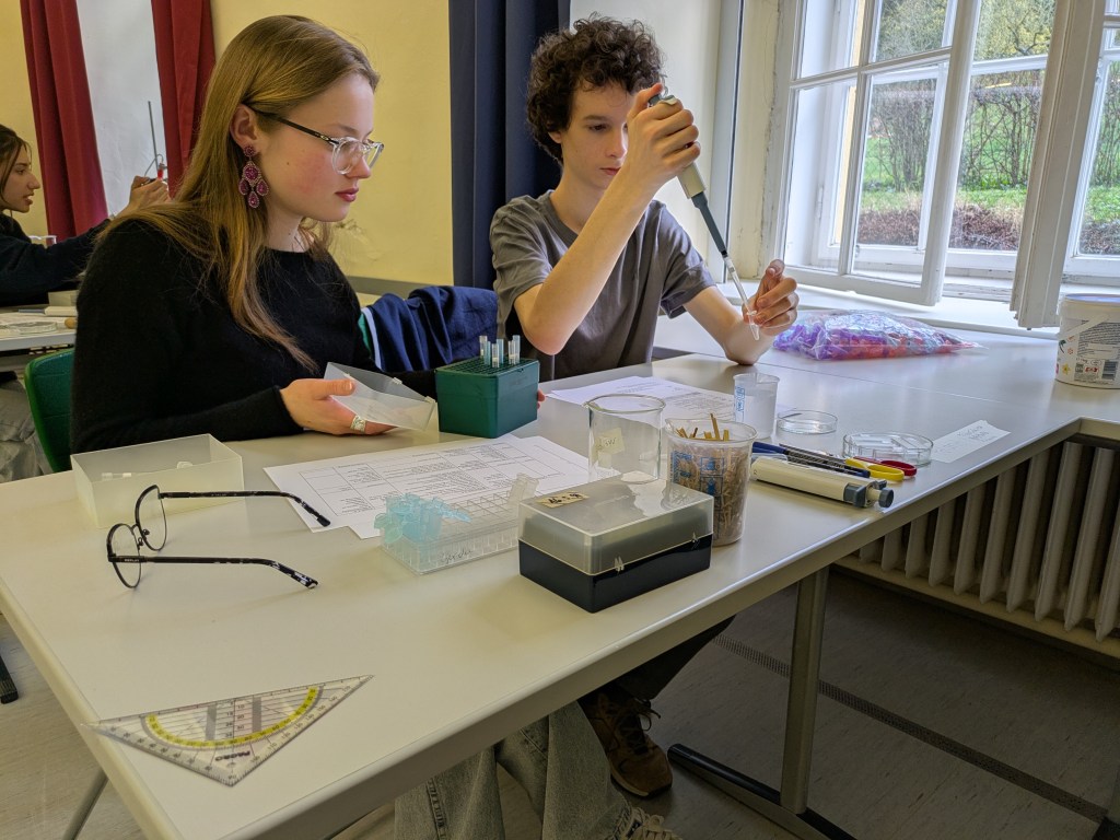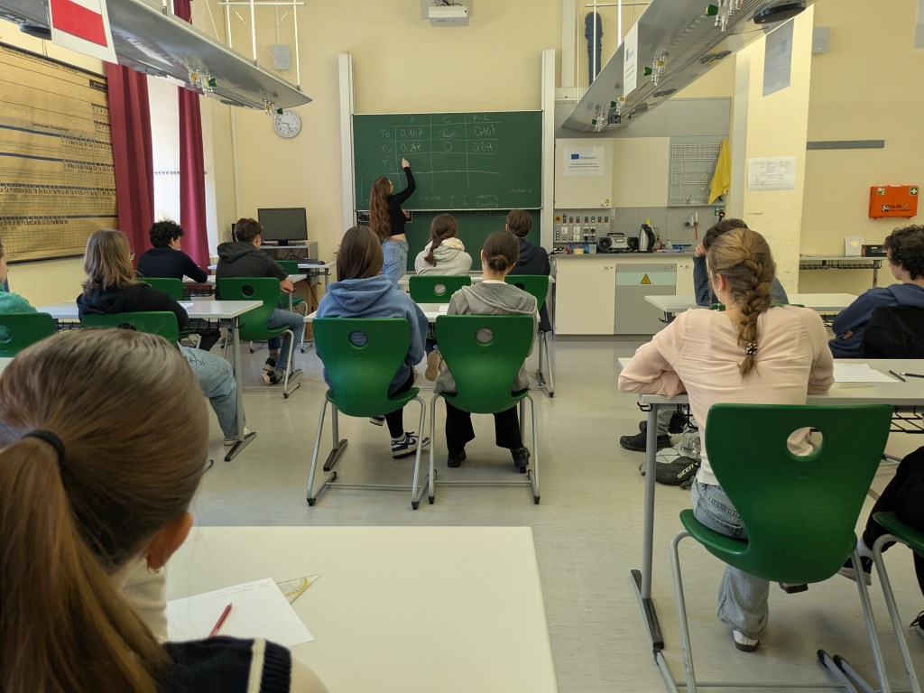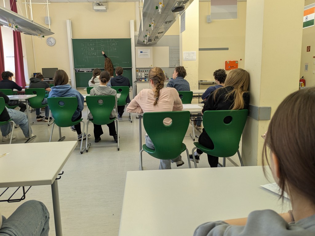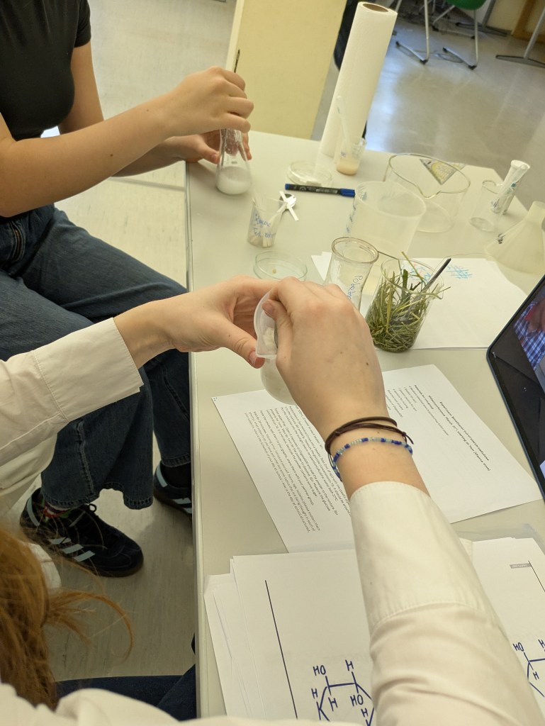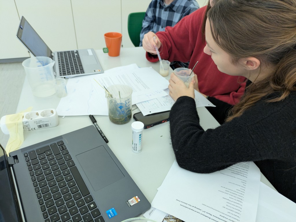 During the Erasmus+ 2025 week in Vienna we carried out experiments on the enzymatic degradation and fermentation of cellulose and starch in internationally mixed small groups. Thanks to presentations from students from Vienna, Hungary, Poland and India (online), we learned about the theoretical background of the experiment. After adding the enzymes cellulase and amylase respectively we measured the increasing concentration of glucose photometrically. As expected, an increase could be observed in every group. After adding yeast, the fermentation was measured by a decrease of the glucose concentration. The experiment was completed by an intense discussion of the results.